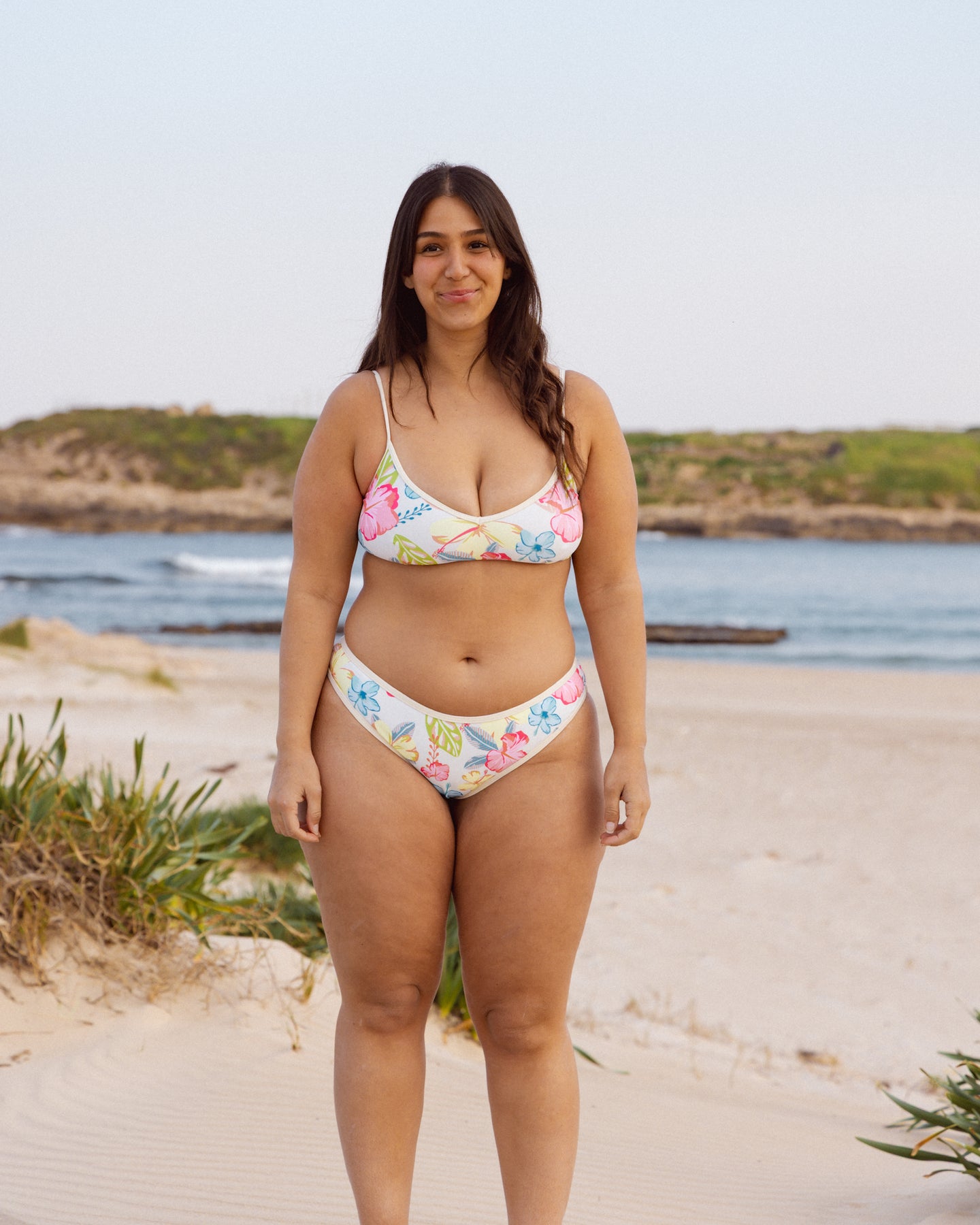 עליון בוניטה - העליון הזה שאת יכולה לעשות איתו הכל! גזרת גוזיה עם קשירה מאחורה לכיוונון .ההיקף ונוחות מקסימלית, בתוספת פס מתאר בצבע שמנת שמוסיף טאץ' מודגש עשוי מבד רך ונעים על הגוף בהדפס PARADISE צבעוני שמרגיש כמו חופשה טרופית.
